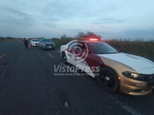 Ciudad Mante, Tamaulipas.- Personal de la Guardia Estatal perteneciente a la Delegación Mante acudió al kilómetro 144 de la Carretera Federal 80 Mante-Tampico para auxiliar a una mujer tras un accidente vial.