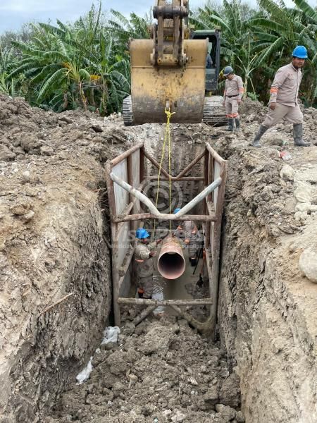 En esa área se introdujeron 110 metros lineales de colector de 14 pulgadas de diámetro con tubería de PVC alcantarillado, a una profundidad de 3.30 metros, en Bulevar al Puerto Industrial, entre Bulevar Allende y Coronel Trujillo, del referido sector.