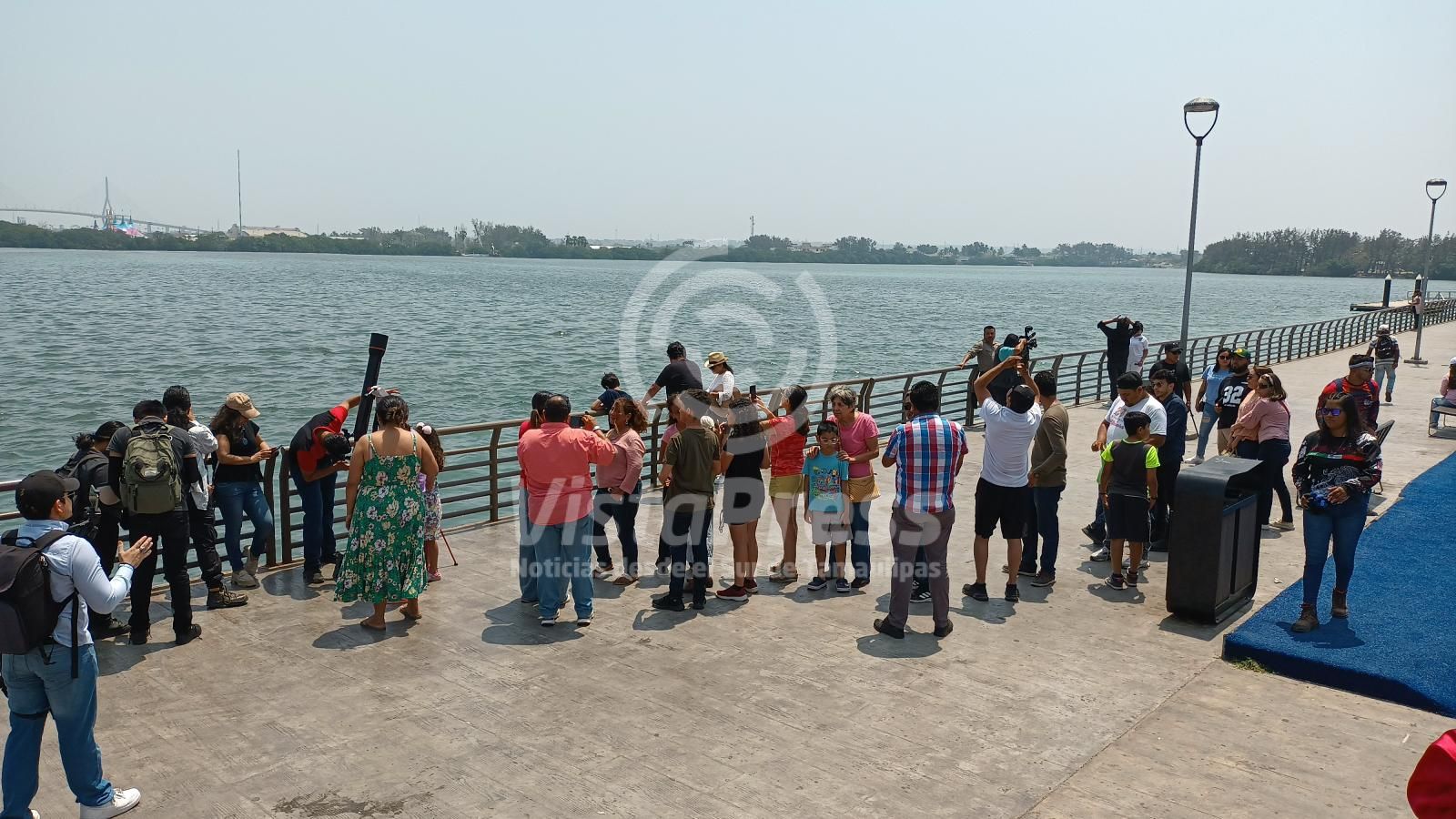 Tampico, Tam.- Decenas de personas se reunieron en el terreno de la Laguna del Carpintero para disfrutar del eclipse solar que se registró al mediodía de este lunes.