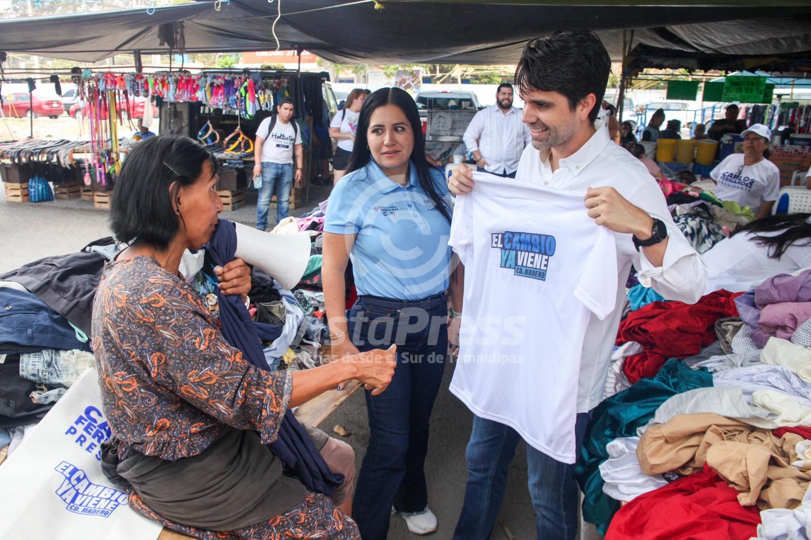 Carlos Fernández Altamirano, candidato a la Presidencia Municipal de Ciudad Madero de la alianza “Fuerza y Corazón por Tamaulipas”, saludó a vecinos del sector Adolfo López Mateos y a oferentes del rondante de Pies Húmedos, de quienes recogió las principales demandas ciudadanas.