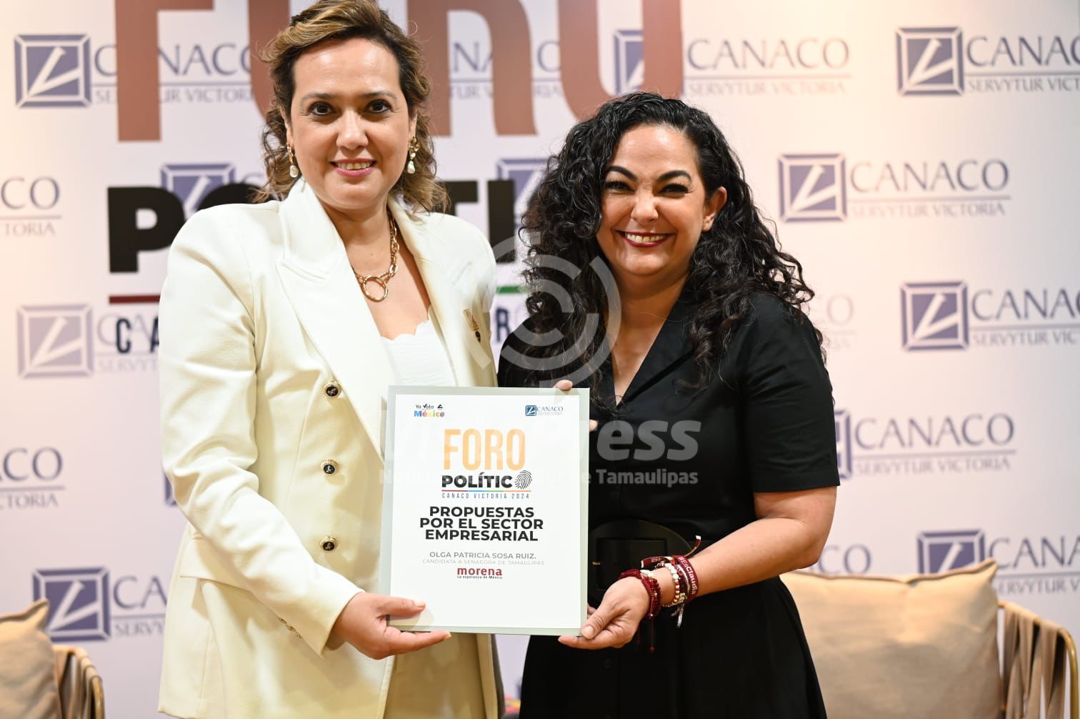 Ciudad Victoria.- Ante empresarios de todos los rubros económicos de la capital de Tamaulipas, la candidata de Morena al Senado Olga Patricia Sosa Ruíz, hizo la presentación de los ejes en materia de empleo, economía y propuestas de campaña, como parte del foro político organizado por la Cámara Nacional de Comercio, Servicios y Turismo que preside Greyci Ethel Robles Barajas.