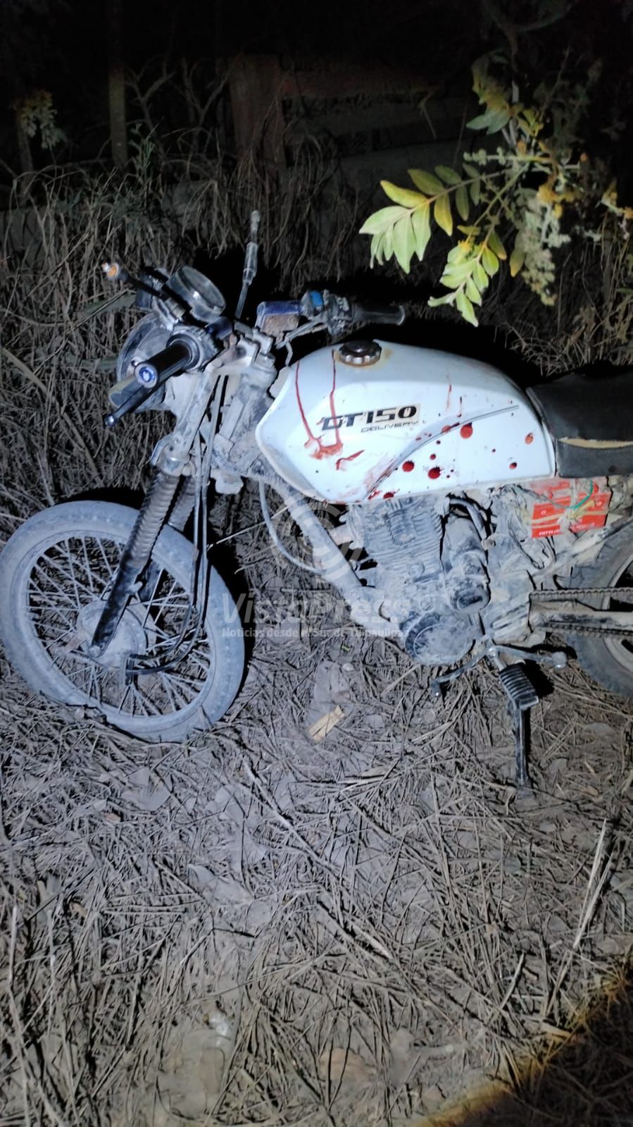 Ante ello elementos motorizados del Escuadrón Nacional de Rescate arribaron al punto, en donde solamente fue encontrada una motocicleta de color blanca que tenía huellas de sangre; indicativo que el conductor terminó con severas heridas.