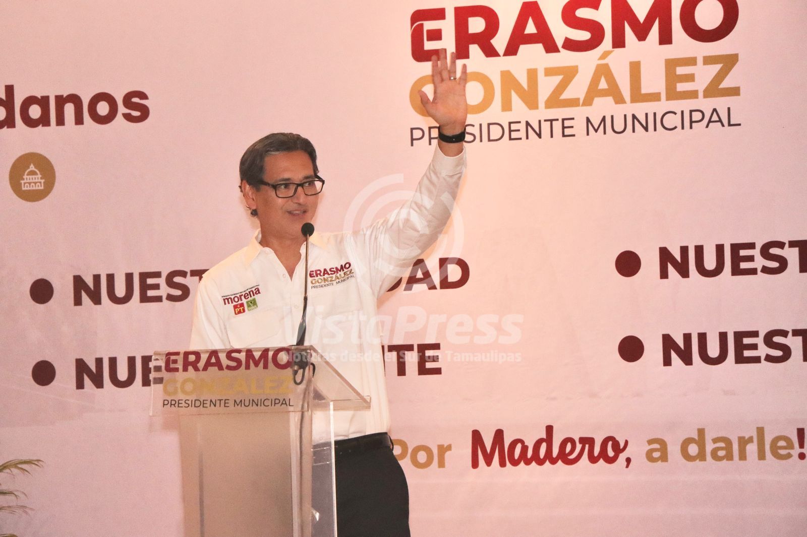 Durante el evento, Erasmo González fue acompañado por los candidatos de la Coalición “Sigamos Haciendo Historia en Tamaulipas”, Cynthia Jaime “La Comaye” y Claudio de Leija Hinojosa para la Diputación al Congreso Local por los Distritos 19 y 20 respectivamente. En esta ocasión, se entregaron reconocimientos a los moderadores de los debates en los foros “Nuestra Ciudad”, “Nuestra Gente”, “Nuestra Paz” y “Nuestro Gobierno”.