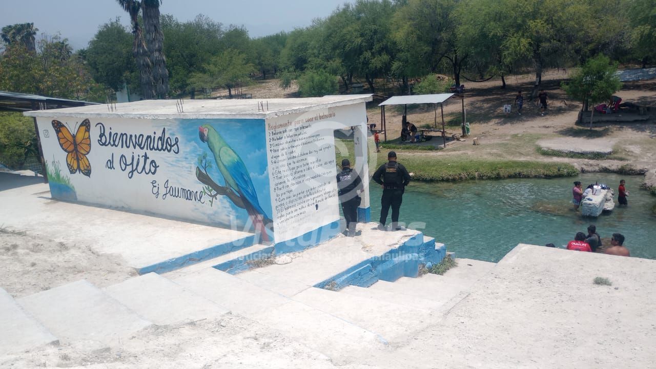 Jaumave, Tam.- A través del Operativo Colonia Segura en el Balneario El Ojito ubicado en el municipio de Jaumave, personal de la Guardia Estatal previene hechos delictivos en este sitio, frecuentado por visitantes ante las altas temperaturas.