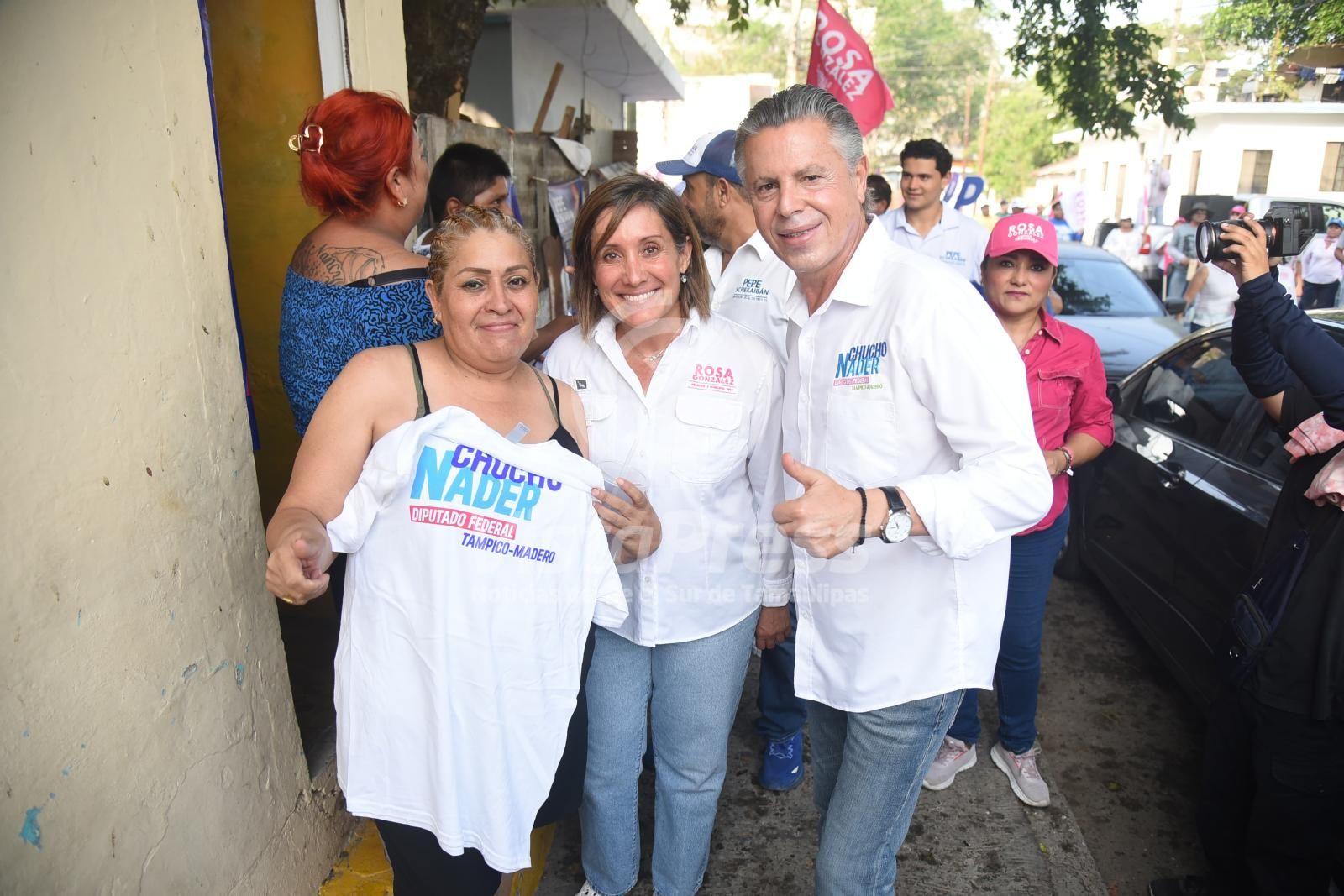 Acompañada de Chucho Nader, candidato a la Diputación Federal por el Octavo Distrito y de Pepe Schekaibán, aspirante a la Diputación local por el distrito 22, la abanderada de la alianza «Fuerza y Corazón por Tamaulipas» sostuvo que en los últimos cinco años Tampico recuperó la paz, la certidumbre y el desarrollo, y precisó que esto fue posible gracias a un gobierno eficiente, responsable y comprometido con el bienestar de las familias tampiqueñas.