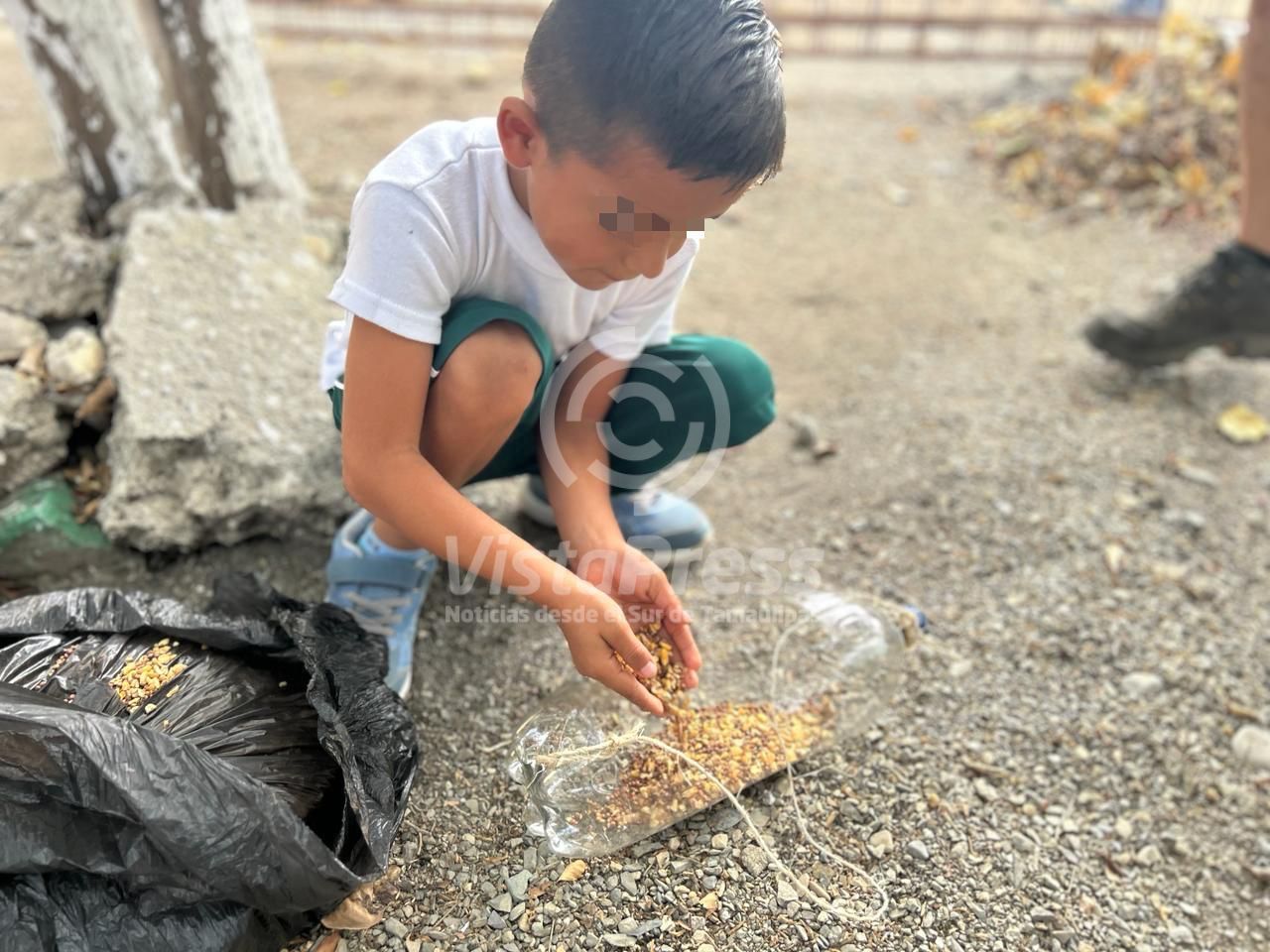 Gómez Farías, Tamaulipas.- Al mismo tiempo que se divierten y conocen, niñas y niños asistentes al Parque Ecológico «Biósfera El Cielo» aprenden a elaborar bebederos para la fauna.