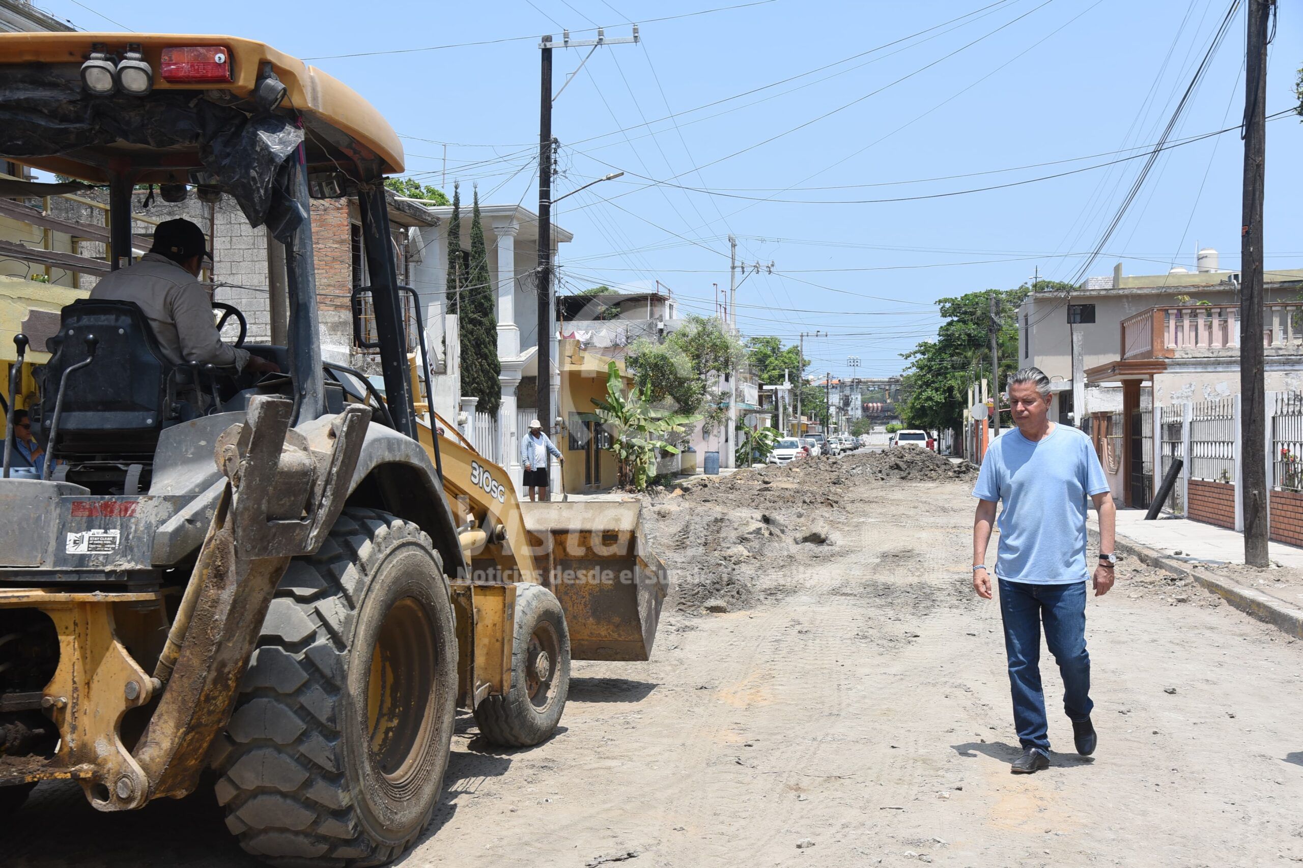 El Presidente municipal Chucho Nader supervisó este día los trabajos de pavimentación a base de concreto hidráulico que se llevan a cabo en la calle Victoria de la colonia El Golfo, con el propósito de ampliar la conectividad y elevar la calidad de vida de la población asentada en este importante sector.