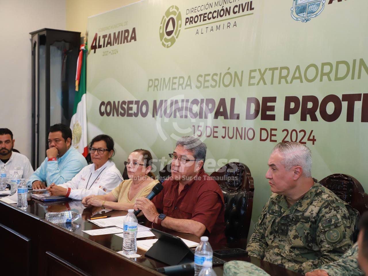 Altamira, Tam. -En la sala de Cabildo de la presidencia municipal de Altamira se llevó a cabo la primera sesión extraordinaria del Consejo Municipal de Protección Civil de esta ciudad y puerto, reunión que estuvo encabezada por el alcalde, Dr. Armando Martínez Manríquez, y en la que participaron activamente diversas dependencias tanto municipales, estatales y elementos de las fuerzas del orden.
