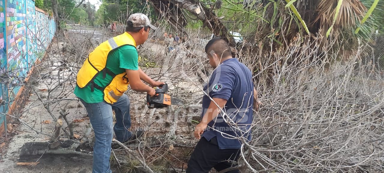 Cerro Azul, Ver.- A temprana hora de este jueves la dirección municipal de protección civil y brigadas del rescate, se activaron a causa que las lluvias que dejó a su paso a la tormenta tropical «Alberto»; ocasionó el colapso de cuatro árboles en diferentes puntos de la cabecera municipal.