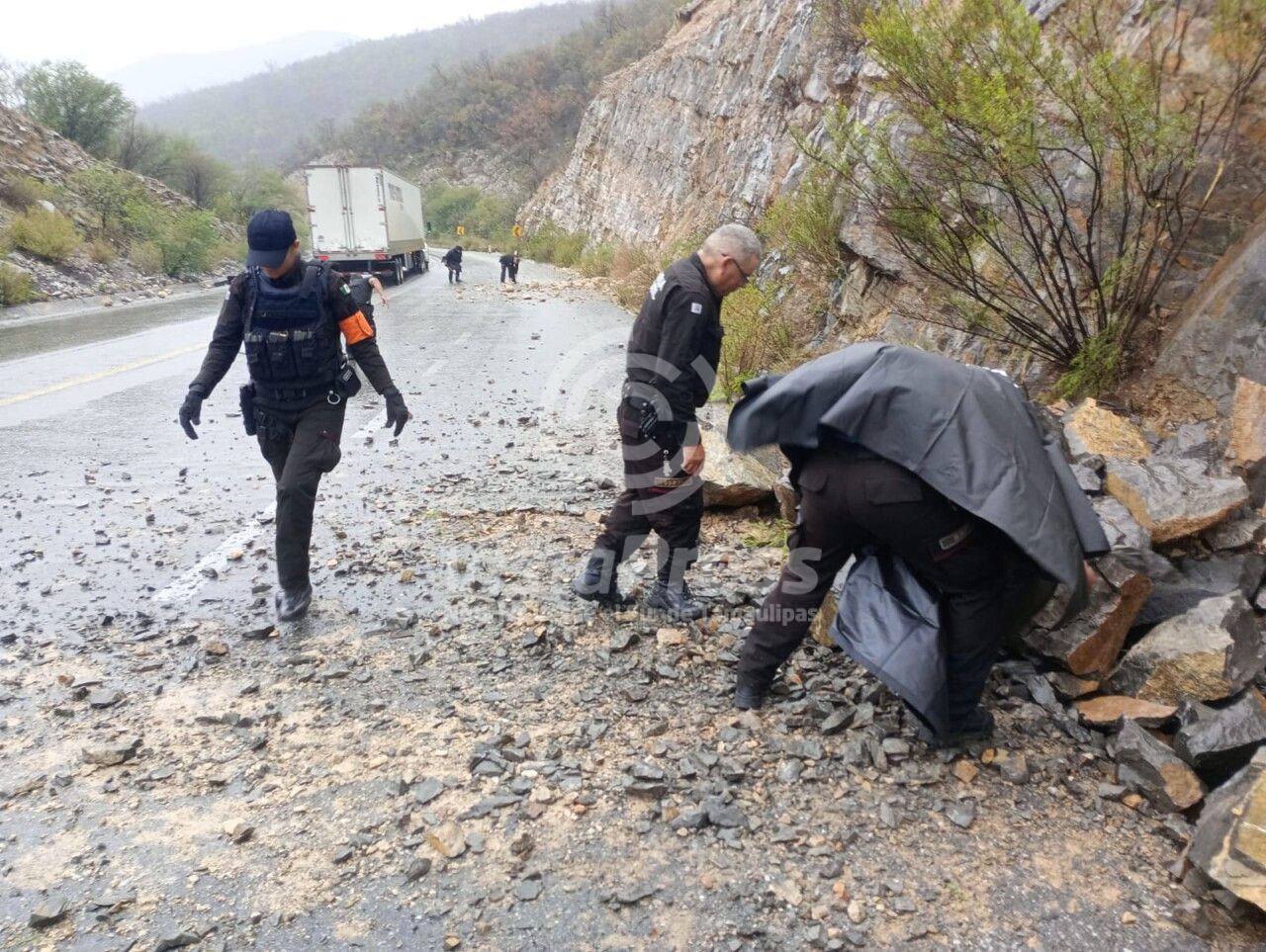 Un ejemplo de esta asistencia ocurrió mientras los efectivos circulaban sobre el kilómetro 19 del Libramiento Naciones Unidas de Ciudad Victoria, lugar en el que visualizaron un vehículo atascado en el fango y auxiliaron al conductor para movilizarlo fuera de la zona de riesgo.