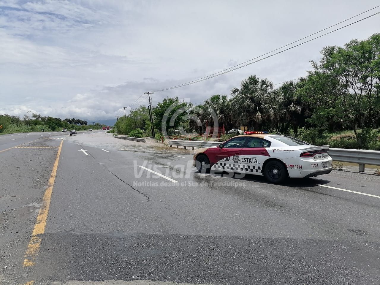 Padilla, Tam.- Debido a un encharcamiento a la altura del kilómetro nueve, la circulación vial se encuentra cerrada en el carril de norte a sur en la Carretera Federal 85.