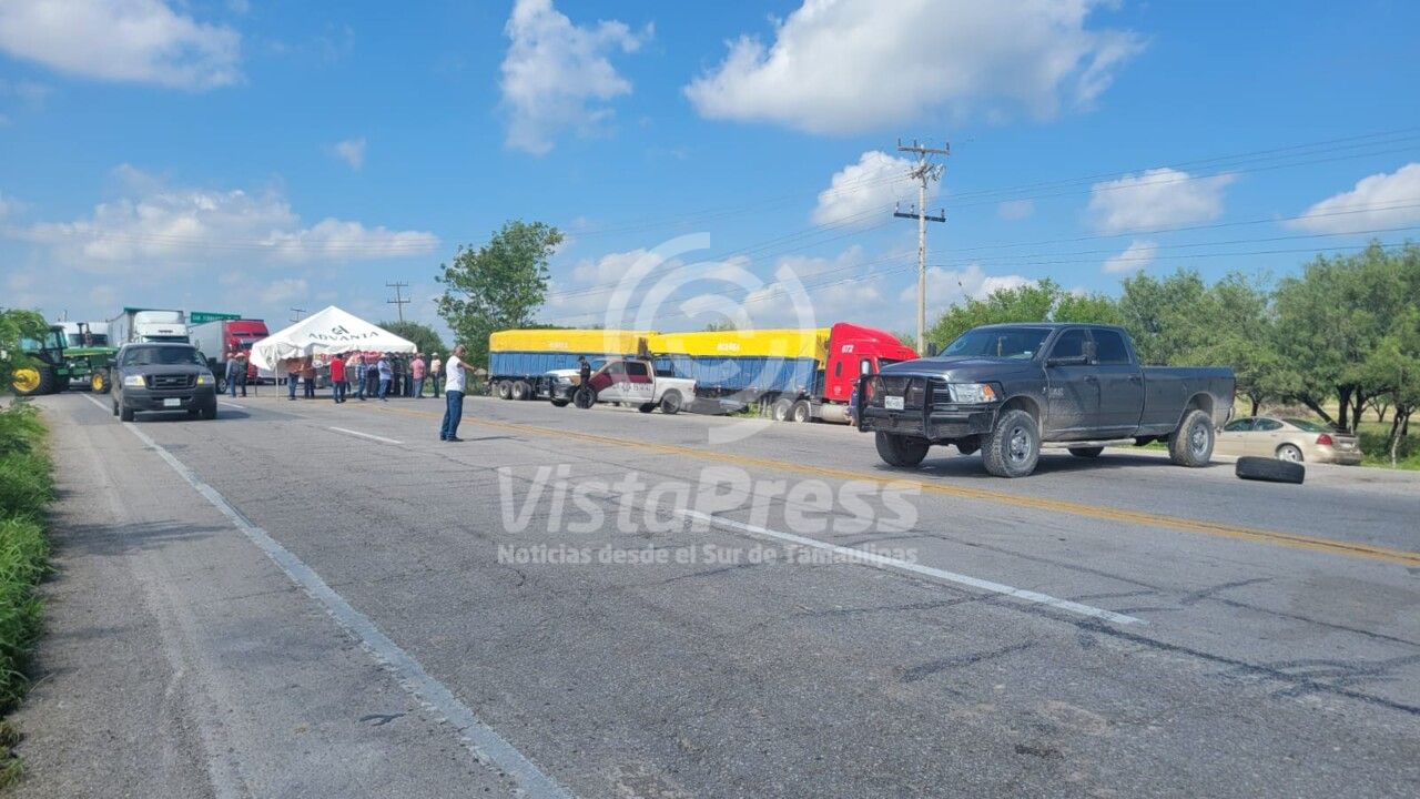 San Fernando, Tamaulipas.- Productores de sorgo se encuentran bloqueando parcialmente la circulación vial en la Carretera Federal 101 a la altura del municipio de San Fernando.
