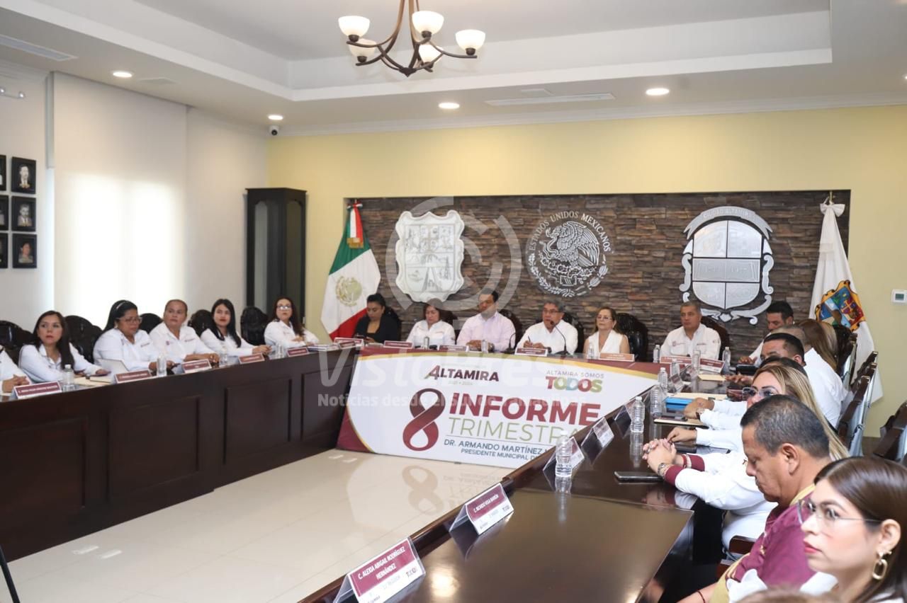 Fue desde la sala de Cabildo de la presidencia municipal que Armando Martínez, acompañado de síndicos, regidores y su esposa, la C.P. Rossy Luque de Martínez, presidenta del Sistema DIF local, informó al pueblo de Altamira importantes avances en el orden municipal, sobre todo en materia hídrica.