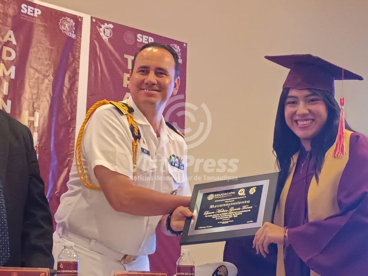Las felicitaciones también se hicieron presentes en voz del padrino de generación, Licenciado Eduardo García Avendaño y del comisionado responsable de la Dgeti en Tamaulipas, maestro Olegario Muñiz Cura.