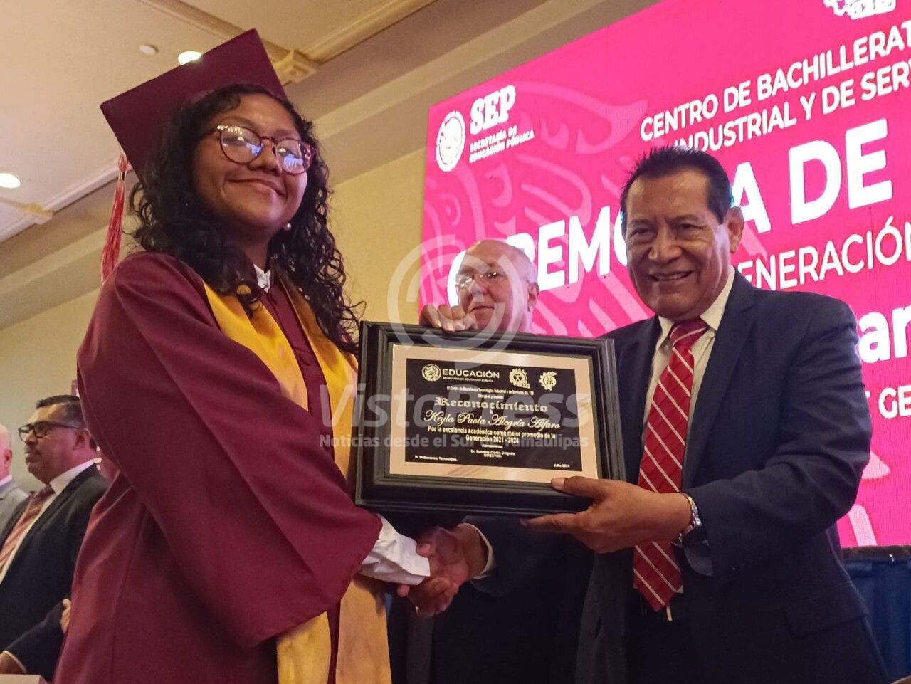 Con la entrega de medallas y diplomas a los estudiantes de mejor promedio de la generación 2021 – 2024, fue como se llevó a cabo la XLI ceremonia de graduación del del Cbtis 135 en Matamoros.