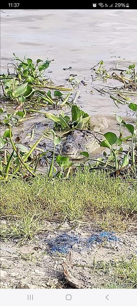 Pueblo Viejo, Ver.-Un cocodrilo de casi cuatro metros de largo fue localizado a un costado de El Paso del Humo en el municipio de Pueblo Viejo, a la mañana de este sábado.