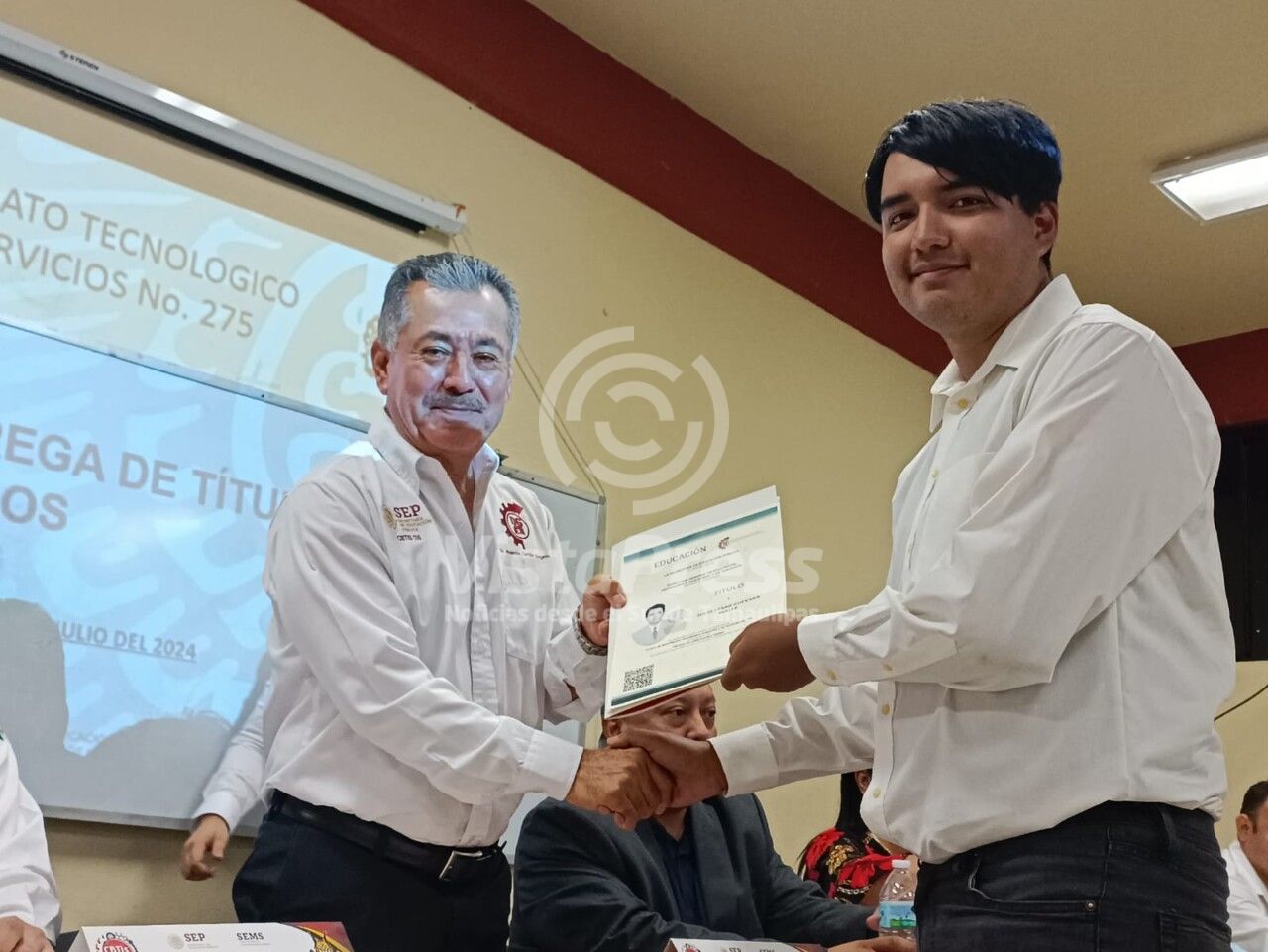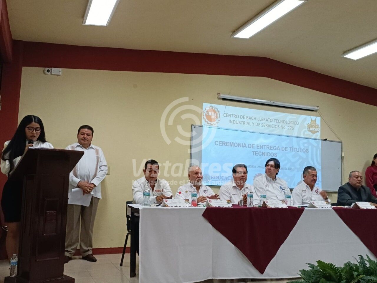 En una ceremonía sencilla pero emotiva a la vez, el Centro de Bachillerato Tecnológico Industrial y de Servicios número 275, hizo entrega de cien títulos entre técnico en mecatrónica, programación, soporte y mantenimiento de equipo de cómputo y laboratorista clínico, esto, para igual número de jóvenes que concluyeron sus estudios en esta institución.