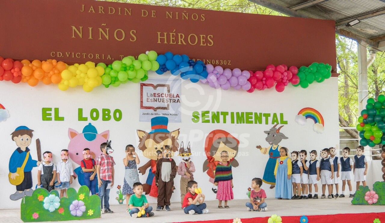 Durante la rendición de cuentas, estudiantes del plantel, protagonizaron la representación teatral “El Lobo Sentimental” como parte de las evidencias pedagógicas que muestran el desarrollo de habilidades adquiridas durante el ciclo escolar en el nivel de preescolar.