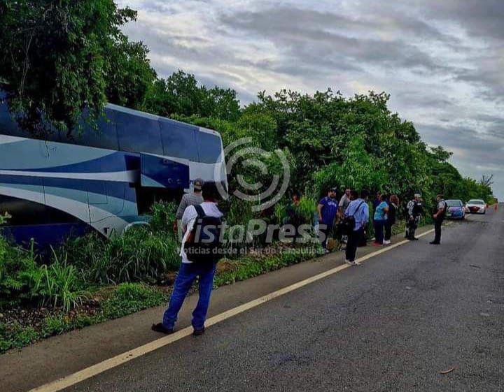 El percance carretero ocurrió poco antes de las 07:00 horas a la altura del kilómetro 174 + 500 de la autopista Tuxpan – Tampico con dirección a la ciudad de Tampico Tamaulipas, lugar donde el conductor del autobús pierde el control de la unidad de transporte público saliendose de la cinta asfática para terminar entre en medio de los matorrales llevándose el susto de su vida.