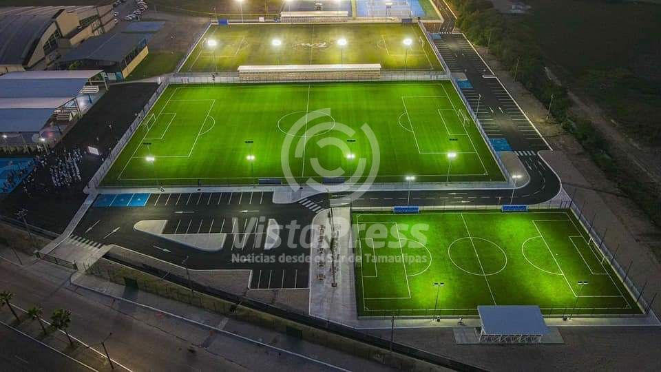 Chucho Nader detalló que en este complejo se construyeron dos campos de fútbol profesional, uno de fut siete, uno más para fútbol infantil; y uno de fútbol americano en la modalidad tochito, todos provistos con pasto sintético, gradas, bancas y alumbrado, lo que permite su uso, todos los días del año.