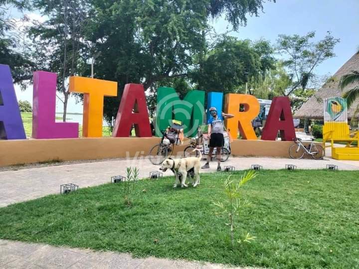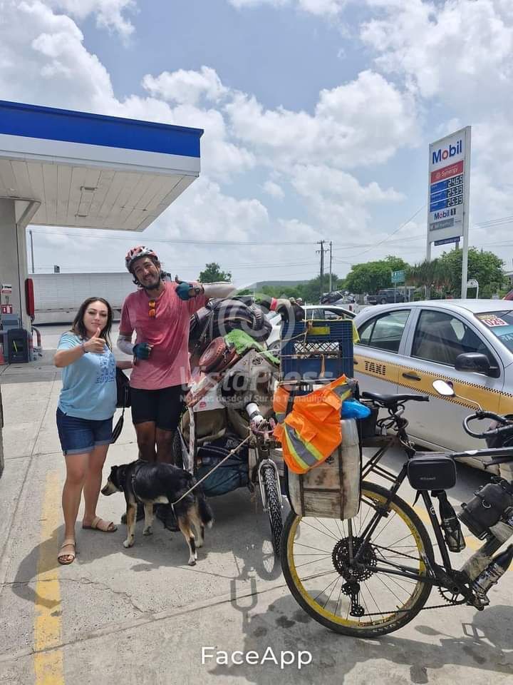 Altamira, TAM.– Con una bicicleta y la compañía de sus mascotas, José de Jesús Lomelí Contreras ha emprendido una travesía única recorriendo el país, pasando este martes por la mañana por el municipio de Altamira.