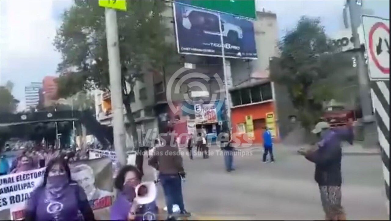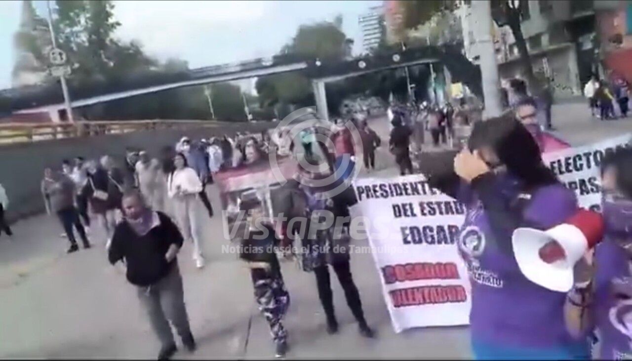 Ciudad de México— Un colectivo feminista marchó por las calles de la Ciudad de México el jueves para manifestarse en contra del presidente del Tribunal Electoral de Tamaulipas, Edgar Danés Rojas. Con pancartas que rezaban “acosador”, el grupo de mujeres protestó en solidaridad con Erika Natividad Rodríguez Mascorro, quien presentó una denuncia por acoso sexual y hostigamiento en su contra.