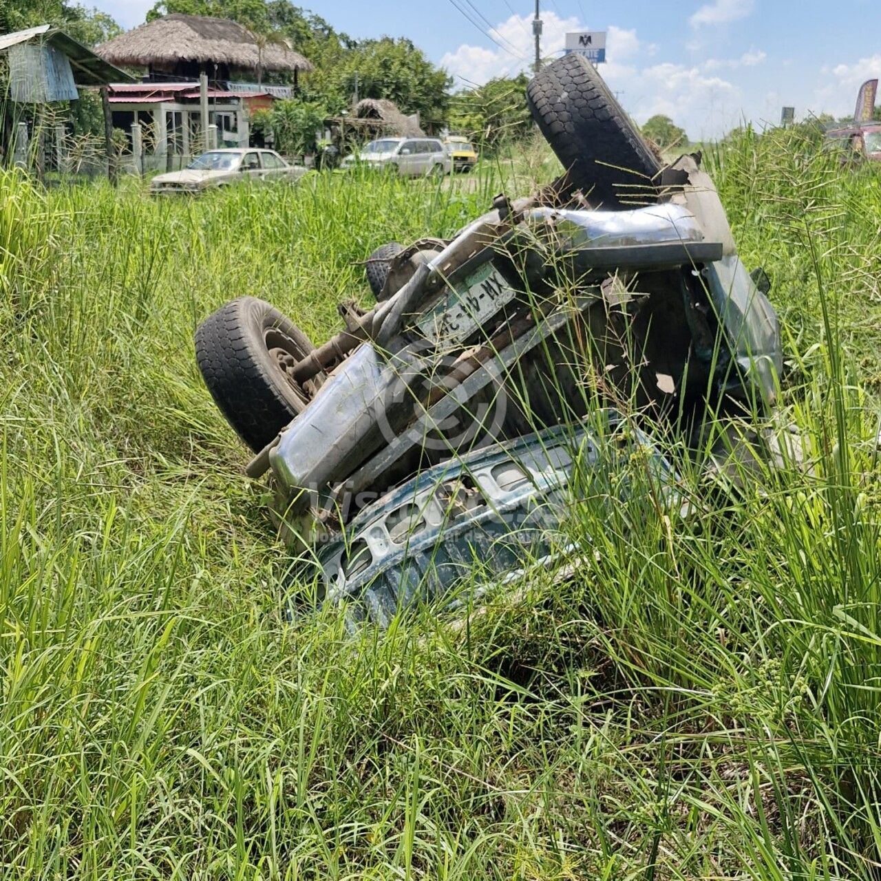 El director de Protección Civil de Tampico Alto, Matías Alejandro Castillo Altamirano, informó que la camioneta marca Ford, tipo Ranger, fue embestida en la parte trasera por un vehículo propiedad de la empresa La Crema, para salirse de la carpeta de rodamiento hasta terminar volcada entre los matorrales.