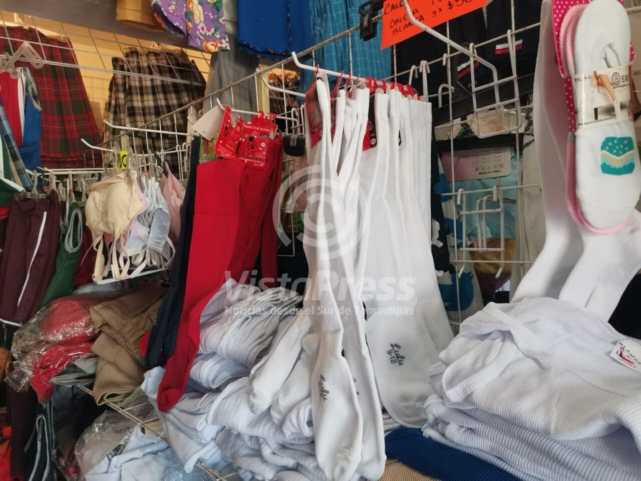 Comentó que tienen la promoción en la calceta escolar blanca que ha tenido mucho éxito 3 pares por 50 pesos, la calceta de color en 20 pesos.