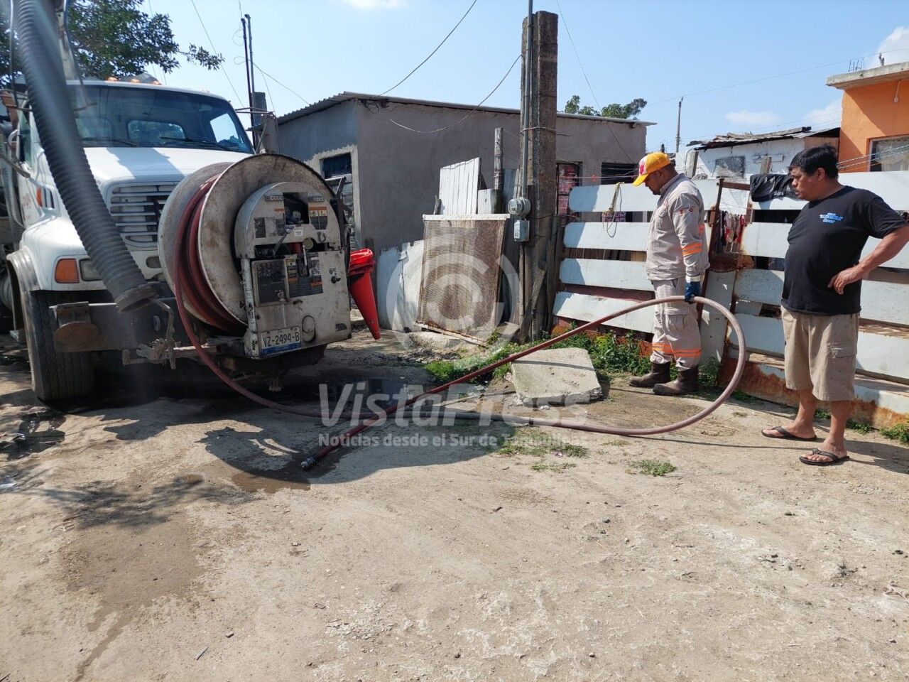 Atendiendo reportes de escurrimientos de aguas residuales, personal de la Comisión Municipal de Agua Potable y Alcantarillado de Altamira llevó a cabo acciones de sondeo, desazolve y mantenimiento en descargas sanitarias en diferentes colonias de esta ciudad.