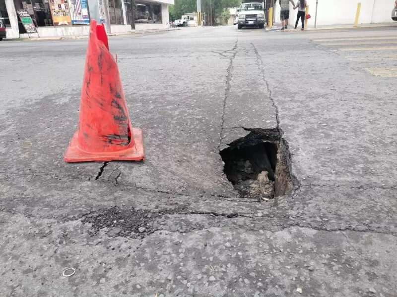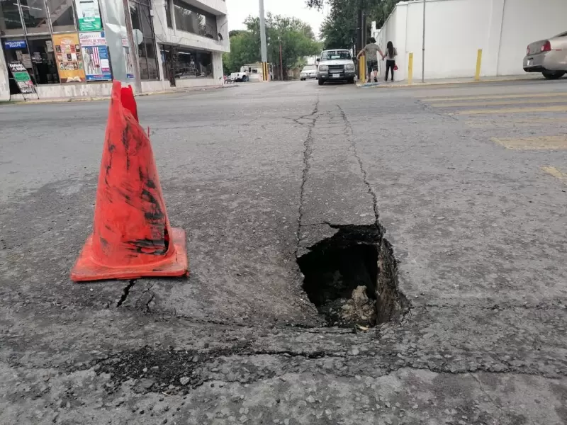 En el punto crítico de la avenida Guerrero, un pequeño cono naranja ha sido colocado para alertar a los ciudadanos del nuevo hundimiento. Sin embargo, al examinar de cerca el socavón, se puede observar que la delgada capa de asfalto parece estar en el aire, sostenida solo por un delgado tramo de pavimento que podría ceder bajo el peso de los vehículos. Las grietas visibles en el pavimento advierten del peligro inminente, abarcando casi la mitad de la vía principal.
