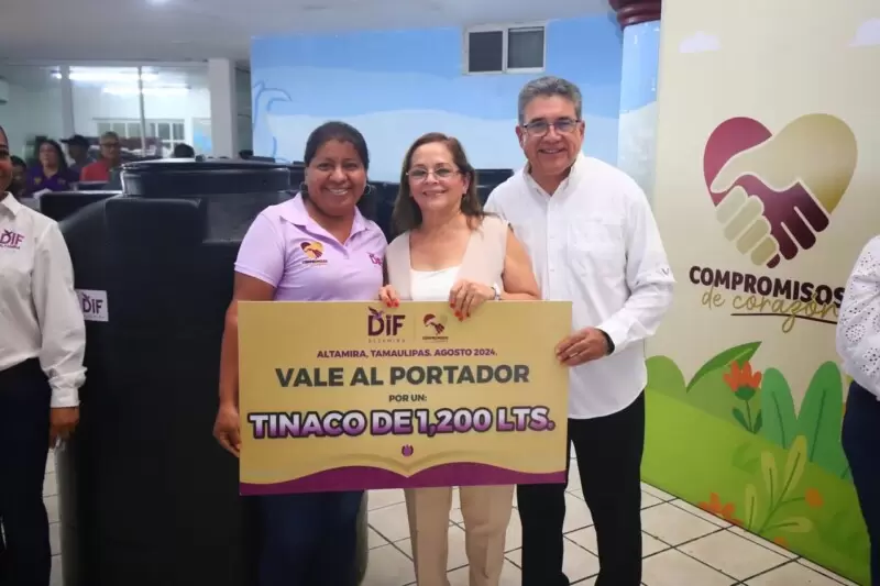 El Sistema para el Desarrollo Integral de la familia en Altamira, que dirige la C.P. Rossy Luque de Martínez, en coordinación con el Gobierno Municipal y la empresa SOFTYS, llevó a cabo la entrega de 187 tinacos en un evento realizado en la Palapa de Champayan de la zona centro de la ciudad.