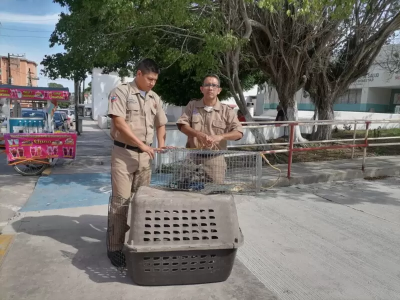 El animal fue resguardado por el personal de esa dependencia de Salud y posteriormente entregado al heroico Cuerpo de Bomberos.