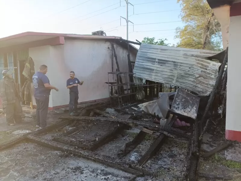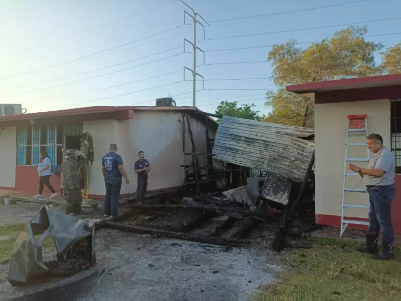 Matamoros, Tam.-Esta mañana, alrededor de las seis am, un corto circuito originó el incendio de la cooperativa escolar de la Escuela Primaria «José María Cárdenas» en Matamoros, ocasionando graves daños en dos aulas didácticas y un desayunador que colindan con la estructura de madera que se quemó por completo.