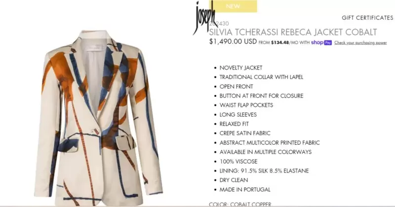 Canturosas asistió al evento con una blusa de la prestigiosa marca Silvia Tcherassi, modelo Rebeca Jacket Cobalt, valorada en mil 490 dólares (aproximadamente 29 mil 55 pesos).