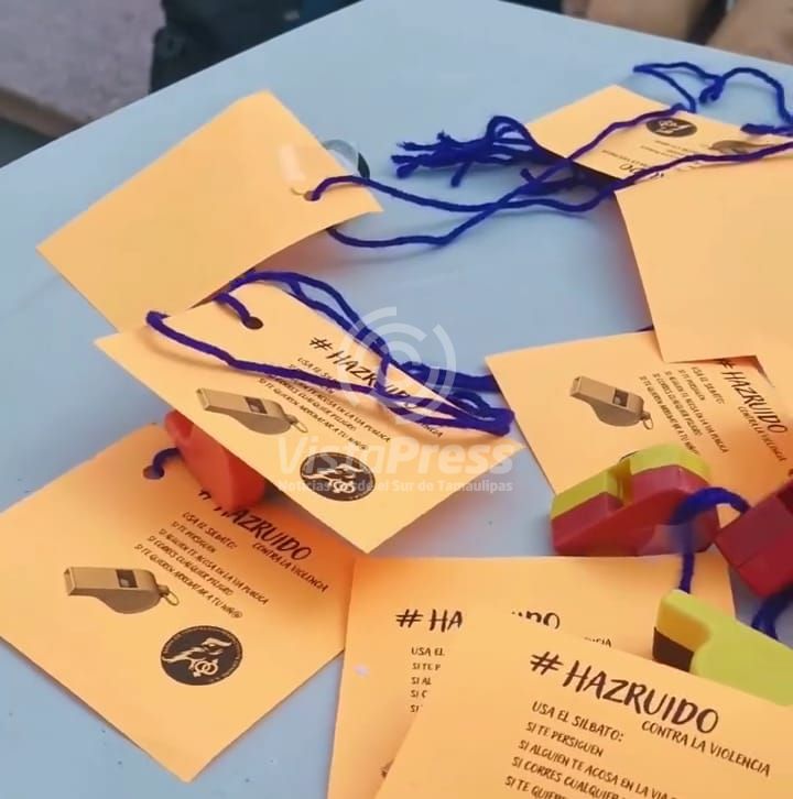 «Haz ruido contra la violencia. Utilicemos el silbato para levantar la voz y que alguien pueda apoyarnos. No queremos una más no queremos una menos como ha pasado los últimos días y si ves que están agrediendo a alguien silba para que puedas salvar a vida de esa persona», expresó durante la actividad que realizaron.