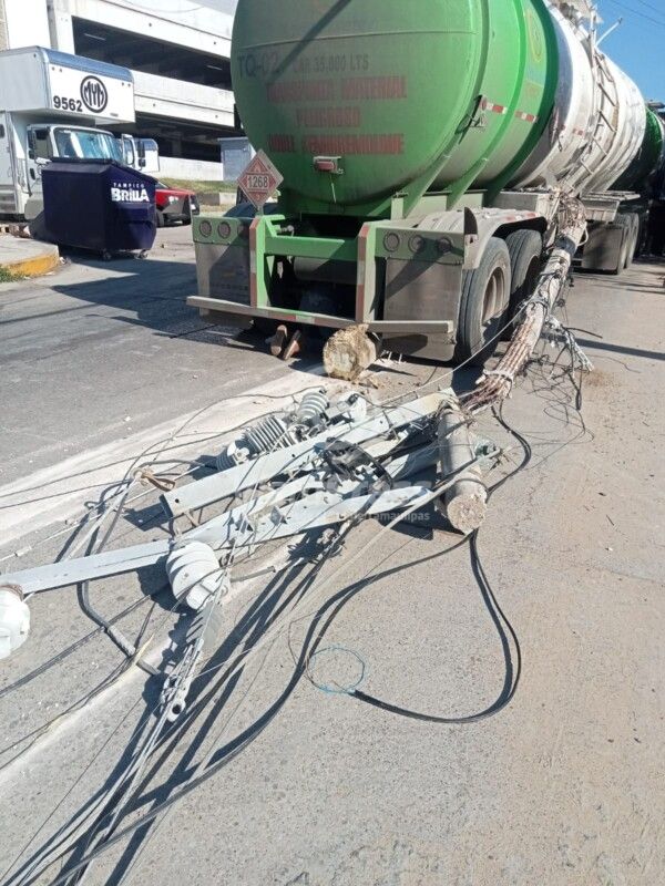 Cuentan vecinos que fue una pipa doble remolque rotulada con el nombre de «Tellez Energy Group» con placas de México la que se llevó los postes tumbando los respectivos cables.
