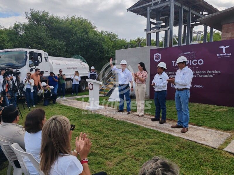 Agradeció el apoyo brindado por el Gobernador del Estado, Dr. Américo Villarreal Anaya, el secretario de Recursos Hidráulicos para el Desarrollo Social, Ing. Raúl Quiroga Álvarez y al gerente general de COMAPA SUR, Mtro. Francisco José González Casanova, para poder emprender este proyecto, mediante el cual se dotará de agua tratada para regar 117 parques que hay en Tampico, a través de 3 pipas que realizarán el recorrido programado.