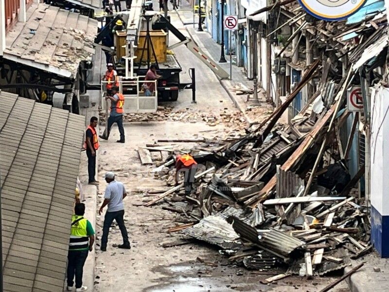 Tras el desprendimiento de la fachada en la antigua edificación del Hotel Progreso en la zona centro de Tampico sucedida la madrugada de este sábado, el Ayuntamiento porteño activó un plan de contingencia y retiro de escombro en el sitio, con la participación de las Secretarías de Servicios Públicos, Obras Públicas y Protección Civil.