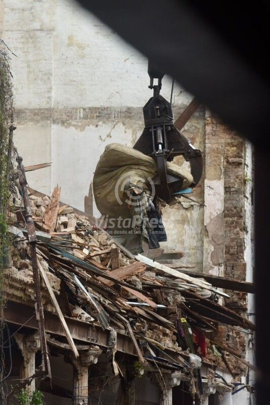 Con la finalidad de garantizar seguridad de la poblacion, el Ayuntamiento de Tampico prosigue con los trabajos de remoción en la fachada del antiguo Hotel Progreso de la zona centro de Tampico, mismo que el pasado sábado sufrió desprendimiento a consecuencia de las intensas lluvias registradas, sin que se pfesentaran víctimas.