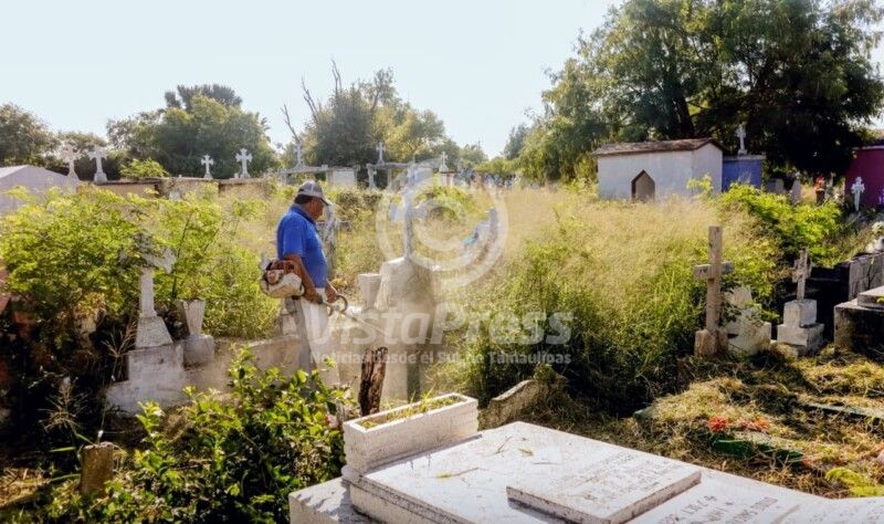 H. Matamoros, Tam.- Por instrucciones del alcalde Alberto Granados Fávila, se continúa con la limpieza de los panteones de la ciudad para garantizar que estén en óptimas condiciones con motivo del Día de Muertos.