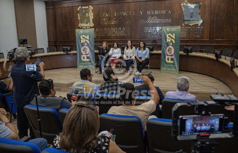 Cynthia Alejandra López Tapia, presidenta del Patronato del Festival Internacional de Otoño (FIO), acompañada de autoridades municipales como la secretaria de Educación, Cultura y Deporte, Yolanda Chavira Estrada, Sandra Luz García Guajardo, directora de Cultura y Alba Viridiana Villasana Aguilar, regidora presidenta de la Comisión de Cultura y Deporte, dio a conocer los detalles de este gran festival que cumple 32 años de brindar espacios artísticos para las familias de la ciudad.