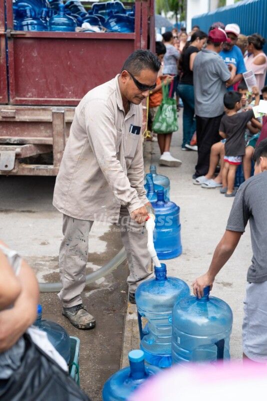 Asimismo, se repartieron un total de 200 botellones de agua y se llevó un tanque cisterna con capacidad de 5 mil litros para el relleno de botellones para las familias que acudieron a la jornada médico-asistencial.