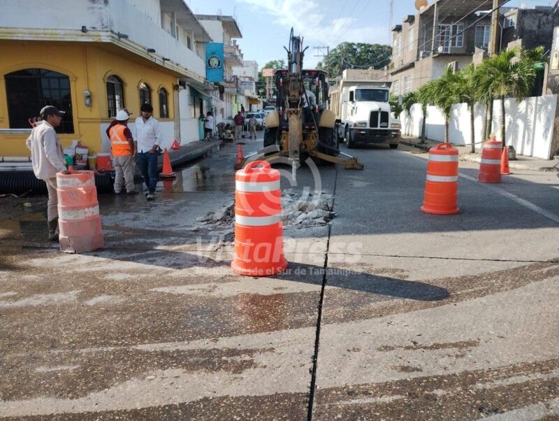 Cuadrillas de trabajadores de COMAPA SUR iniciaron los trabajos de rehabilitación de una línea general de drenaje localizada en importante vialidad del municipio de Tampico, lo que erradicará un problema de escurrimiento de aguas residuales.