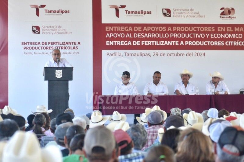 Antonio Rodríguez Méndez, en representación del presidente municipal de Hidalgo resaltó que sin duda alguna este evento es muy importante porque los citricultores reciben una vez más el apoyo de fertilizante, y estan al tanto de los apoyos que brinda el gobernador, Américo Villarreal Anaya, que son de gran ayuda para este importante sector que es la citricultura.