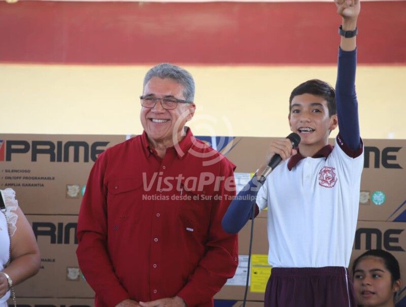 Durante los honores a la bandera del pasado lunes, padres de familia solicitaron al edil el apoyo con aires acondicionados para aliviar las altas temperaturas en las aulas. En respuesta, el presidente municipal regresó al plantel para entregar 15 equipos de aire acondicionado, acompañado por el titular del CREDE Altamira, Jorge Luis Cisneros Martínez, la directora de educación municipal, Mtra. María del Carmen Romero Hernández, el director de la escuela y miembros del cabildo.