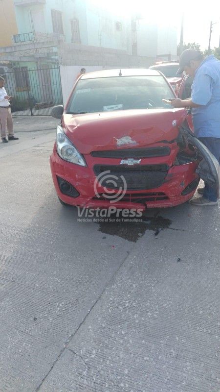 Altamira, TAM.- Una mujer con lesiones leves y daños materiales significativos fue el saldo de un choque entre dos vehículos sedán este martes en el fraccionamiento Arboledas de Altamira.