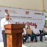 Antonio Varela Flores, secretario de Desarrollo Rural, Pesca y Acuacultura señaló que el programa Nutrimar-Común distribuirá en Tamaulipas más de 38 mil kilos de filete de pescado, para enriquecer de proteína la dieta de las y los tamaulipecos, con este apoyo estaremos entregando más de 190 mil raciones de proteína de pescado en regiones rurales y semiurbanas de diferentes municipios de Tamaulipas, esto gracias a los convenios que suscribimos con el Sistema DIF Estatal, Bienestar y varios municipios, manifestó.