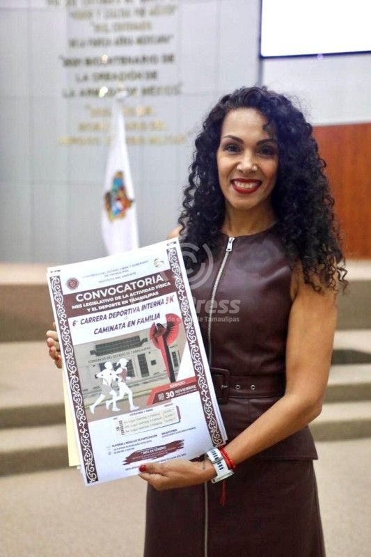 Ciudad Victoria, Tamaulipas.- En sesión del Congreso del Estado, la diputada Cynthia Lizabeth Jaime Castillo, presidenta de la Comisión de Deportes, invitó a sus compañeros legisladores, al personal del Congreso, a la ciudadanía y a los clubes de corredores a unirse en la sexta edición de la carrera deportiva 5K y caminata en familia.