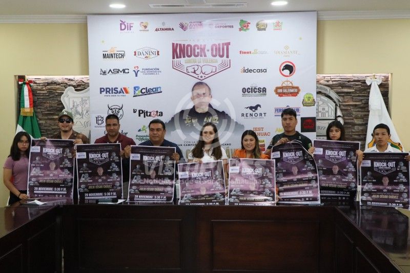 Altamira, Tam.-Con atractivos encuentros boxísticos en diferentes categorías de los niveles profesional y amateur, se llevará a cabo el viernes 29 de noviembre, en punto de las 17:30 horas, el evento “Knock Out contra la Violencia’’ donde se contará con la presencia del gran campeón del box mexicano Julio César Chávez.