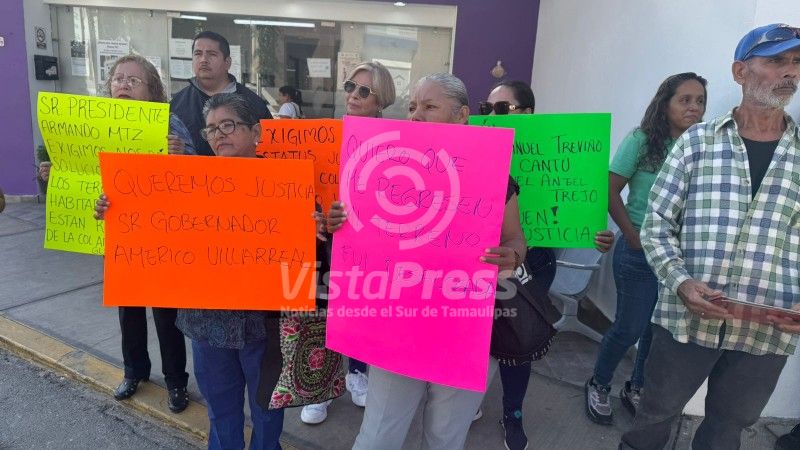 Habitantes de la colonia Américo Villarreal Guerra del municipio de Altamira se manifestaron este miércoles frente a las oficinas del Instituto Tamaulipeco para la Vivienda y Urbanismo (ITAVU), para exigir una aclaración sobre la presunta reventa de predios que estaban en proceso de escrituración.